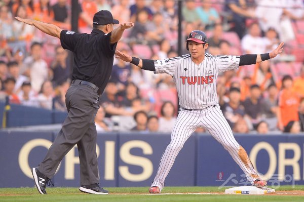 5일 서울 잠실야구장에서 ‘2018 신한은행 MY CAR KBO리그’ 한화이글스와 LG트윈스 경기가 열렸다. 1회말 무사 1,2루에서 LG 오지환이 박용택의 적시타 때 3루로 쇄도해 세이프 되고 있다.