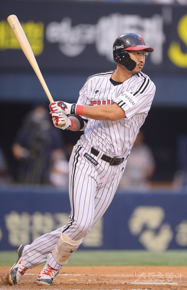 5일 서울 잠실야구장에서 ‘2018 신한은행 MY CAR KBO리그’ 한화이글스와 LG트윈스 경기가 열렸다. 3회말 선두타자로 나온 LG 박용택이 안타를 치고 있다.