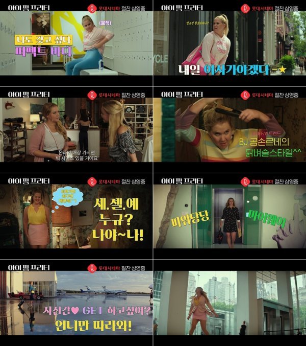 이어서 옷 가게 직원에게 사이즈 지적을 당하고 당황스러워하는 ‘르네’와 뷰티 유투버가 알려주는 헤어 스타일링을 따라 하다가 기대와는 다른 ‘닭벼슬 스타일’로 완성된 머리를 매만지며 초집중하는 모습은 여성 관객이라면 한 번쯤 해봤을 만한 격한 공감을 느끼게 해 물개박수를 유발한다. 이어서 친구들의 메이크업을 해주며 ‘셀레나 고메즈’ 뺨치는 미모로 변신(?)시켜주는 ‘뷰티 메이크업’ 일인자 ‘르네’의 모습과 전신 거울 앞에서 모델 같은 포즈를 잡으며 “세.젤.예 누규? 나야~나!”라며 자신의 모습에 대만족하는 장면은 ‘아이 필 프리티’ 속 자신감 뿜뿜뿜을 500% 장착한 르네의 파워당당한 캐릭터를 기대하게 한다. 이어서 “중요한 건 뭐다? 자신감 뿜뿜뿜!” 카피와 함께 어깨를 곧게 펴고 당당하게 걷는 ‘르네’의 모습은 6월 성수기 극장가의 가장 매력적인 캐릭터의 탄생을 예고한다. 마지막으로 건물 로비에서 사람들의 시선을 의식하지 않고, 마치 런웨이 무대를 걷듯 흥겨워하는 ‘르네’의 모습은 할리우드 코미디 여왕 에이미 슈머의 시원한 코믹 연기를 예고한다.
