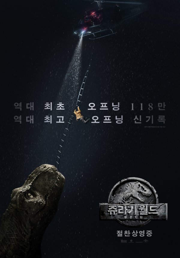 오프닝 118만 명 동원이라는 역대 최초 신기록과 함께 역대 최고 오프닝 기록을 세운 ‘쥬라기 월드: 폴른 킹덤’은 폭발적 예매 화력과 입소문으로 전세대 관객들의 폭발적인 지지를 받고 있다.