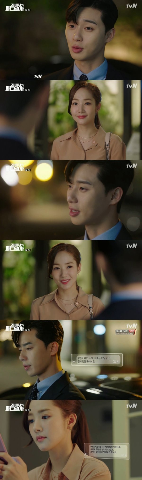 7일 방송된 tvN ‘김비서가 왜 그럴까’에서는 이영준(박서준 분)은 비서실 회식에 참석한 후 김미소(박민영 분)에게 연애를 해주겠다고 말했다.