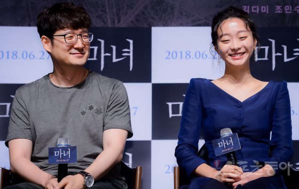 박훈정 감독과 배우 김다미가 8일 서울 강남구 압구정로에 위치한 CGV 압구정에서 열린 영화 ‘마녀’ 제작보고회에서 미소를 짓고 있다.