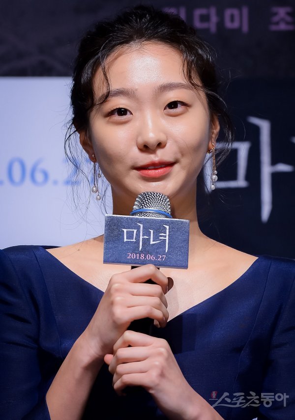 배우 김다미가 8일 서울 강남구 압구정로에 위치한 CGV 압구정에서 열린 영화 ‘마녀’ 제작보고회에서 인사말을 하고 있다.