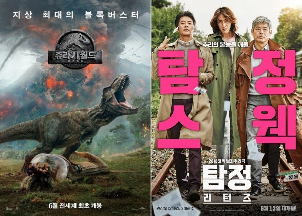 [DA:박스] ‘쥬라기 월드: 폴른 킹덤’ 400만…‘탐정: 리턴즈’ 2위 출발