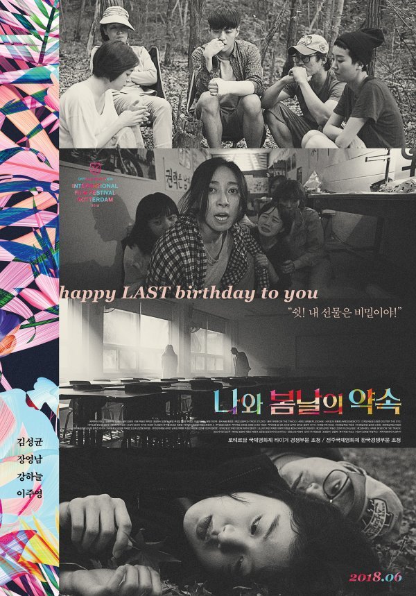 ‘나와 봄날의 약속’은 지구 종말을 예상한 외계人들이 네 명의 인간들을 찾아가 마지막이 될 쇼킹한 생일 파티를 벌이는 이야기를 담은 미스터리 판타지로 김성균 장영남 강하늘 이혜영과 라이징 스타 이주영 김소희 출연으로 탄탄한 캐스팅 라인을 자랑한다. 앞서 공개 된 예고편과 보도스틸로 예비 관객들의 궁금증을 한껏 고조시킨 ‘나와 봄날의 약속’이 공개한 이번 스틸 포스터는 영화의 극적인 장면들과 함께 신비로운 느낌의 패턴이 함께 어우러져 영화의 분위기를 인상적으로 담아 냈다. 뿐만 아니라 ‘happy LAST birthday to you’ 카피는 영화가 담고 있는 ‘지구 멸망’에 대한 신선한 시선을 그대로 표현하고 있다. 여기에 더해 영화의 대사를 카피로 활용 한 “쉿! 내 선물은 비밀이야!”라는 말은 외계인들이 가지고 온 선물에 얽힌 에피소드가 무엇인지 호기심을 자극 해 관객들을 극장으로 이끌 것이다.