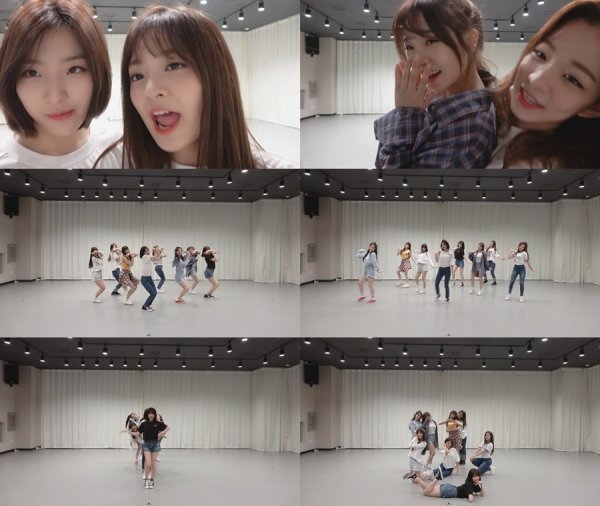 무대 의상이 아닌 각자 편한 복장을 입은 멤버들은 안무 연습에 임하기 전 연습실에 설치된 카메라 앞에서 장난을 치며 자신들만의 방식으로 워밍업을 펼쳤다. 다함께 파이팅을 외치며 본격적인 안무 연습에 돌입한 프로미스나인은 ‘두근두근(DKDK)’ 음악에 맞춰 특유의 상큼 발랄한 퍼포먼스를 선보였다.