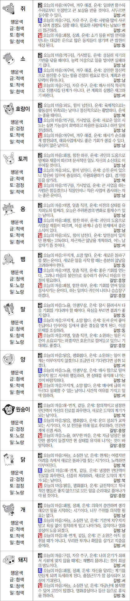 ▲ 오늘의 운세 도표. 스포츠동아