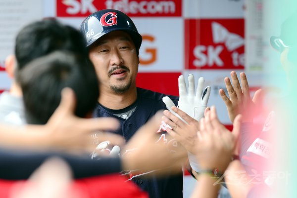17일 인천 SK행복드림구장에서 ‘2018 신한은행 마이카 KBO리그’ SK 와이번스와 롯데 자이언츠의 경기가 열렸다. 1회초 1사 1루에서 롯데 이병규가 SK 선발 이원준을 상대로 우월 투런 홈런을 쏘아 올린 뒤 동료들의 환영을 받고 있다.