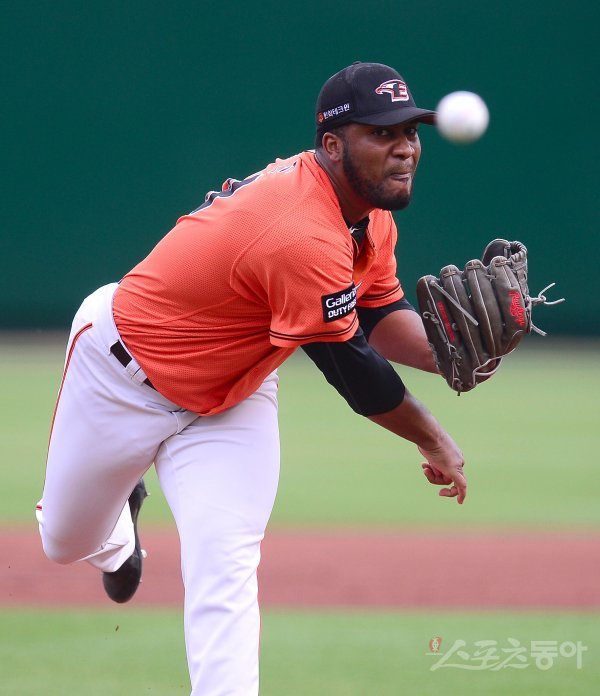 17일 대전 한화생명이글스파크에서 ‘2018 신한은행 MY CAR KBO리그’ 두산베어스와 한화이글스 경기가 열렸다. 선발 투수로 등판한 한화 샘슨이 역투하고 있다.