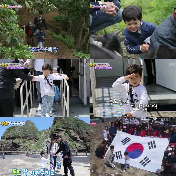 비바람을 뚫고 배에서 내려 첫 발걸음을 내디딘 승재는 독도 경비대 아저씨에게 경례를 하며 한층 성장한 모습을 보였다. 이어 승재는 독도 경비대 아저씨들에게 과자와 가수 선미의 CD를 선물하고 “독도를 지켜주셔서 감사합니다”라는 인사를 전했다.