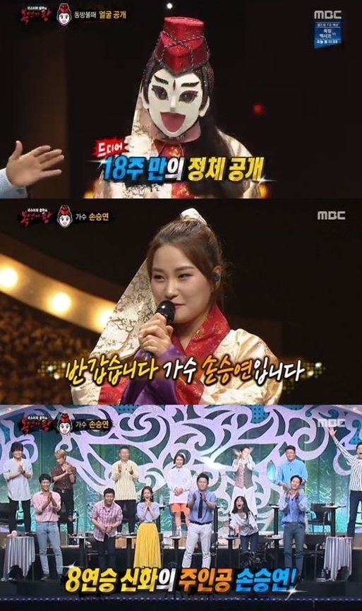 파죽지세의 기세로 8연승에 성공했지만 아쉽게 9연승의 문턱을 넘지 못한 ‘동방불패’의 정체는 가수 손승연이었다. ‘가수들의 가수’로 불리며 놀라운 가창력으로 늘 화제를 모아온 그의 등장에 모두 뜨거운 환호와 격려를 보냈다. 무려 18주 만에 가면을 벗고 정체를 공개한 손승연은 “지금 성대에 혹이 나서 재활치료 중이다. ‘복면가왕’에 출연하며 내 스스로를 시험하는 시간을 가졌다”, “그동안 ‘동방불패’로서의 모든 무대들을 사랑해줘서 감사하다”는 소감을 밝혔다.