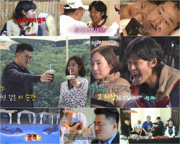 ‘1박 2일’ 요물 PD 정준영의 재치는 마지막까지 상상 이상이었다. 반전에 반전을 거듭한 정준영 PD의 역대급 형몰이가 다섯 형들을 천국과 지옥을 오가게 하며 안방극장에 리얼 웃음을 전했다. 특히 모모랜드가 깜짝 등장한 동해수산, 수영장 취침, 데프콘-조보아 브런치까지 멤버들에게 만개 미소와 처절한 몸부림을 동시에 맛보게 한 정준영 PD의 특급 한 수가 잊을 수 없는 선물 같은 추억을 선사했다.
