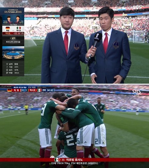 이날 경기에서 독일이 패배해 우리나라의 16강 전선에 험난한 길이 예고된 가운데, 박지성 해설위원은 "지난 시즌 우승팀 답지 않은 경기였다."고 독일의 준비 부족을 비판하며 "우리나라도 독일에 비벼볼만 하다."는 의견을 피력했다. 박지성 해설위원과 배성재 캐스터의 완성된 호흡이 오늘 밤 9시에 열릴 대한민국과 스웨덴의 경기에서 어떻게 드러날지 기대가 모아지고 있다.