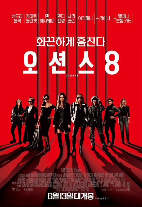 13일 개봉한 영화 ‘오션스8’이 북미에서 ‘오션스’ 시리즈 사상 최고 오프닝을 기록한 데 이어 국내 박스오피스에서도 시리즈 사상 최고 오프닝 성적을 거뒀다. 특히 개봉 후 관객들의 뜨거운 반응을 이끌어내며 역대급 케이퍼 무비라는 찬사를 받고 있어 시리즈 최고 흥행 성적까지 기대하게 만든다.