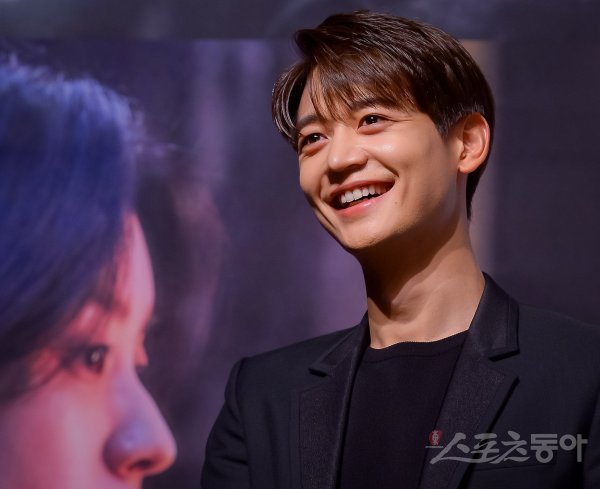 배우 최민호(샤이니 민호)가 18일 서울 강남구 압구정로에 위치한 CGV 압구정에서 열린 영화 ‘인랑’ 제작보고회에서 환하게 웃고 있다.