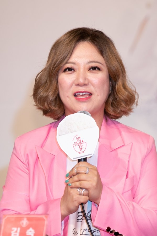 김숙은 18일 오후 서울 영등포구 영중로 타임스퀘어 아모리스 컨벤션에서 열린 올리브 ‘밥블레스유’ 제작발표회에서 “귀여운 막내를 맡고 있는 44세 김숙이다. 최화정, 이영자 언니와 밥을 자주 먹는데 기본 4시간씩 먹는다. ‘언니들과 밥을 먹으면 왜 식사가 안 끝날까’ 의문이 생겼다. 언니들이 내가 돈을 벌자, 밥을 사라고 해서 뷔페에 가서 밥을 샀다. 그 뷔페도 4시간 정도 먹었다”고 말했다.