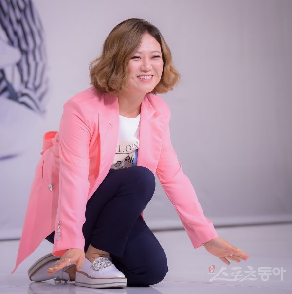개그우먼 김숙이 18일 서울 영등포 타임스퀘어 내 아모리스 홀에서 열린 올리브 ‘밥블레스유’ 제작발표회에 참석해 포즈를 취하고 있다.