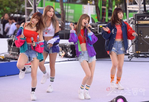 18일 서울 강남구 삼성동 영동대로에 위치한 현대자동차 팬파크에서 2018 러시아월드컵 조별예선 F조 대한민국과 스웨덴의 경기를 앞두고 거리응원이 펼쳐졌다. 그룹 EXID가 열정적인 무대를 펼치고 있다.