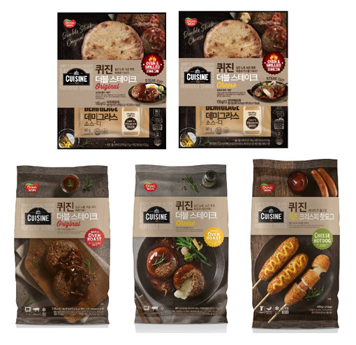 동원F&B는 18일 프리미엄 가정간편식(HMR) 브랜드 ‘퀴진’(사진)을 론칭했다. 프랑스어로 ‘셰프의 요리’를 뜻하는 ‘퀴진’은 전문 셰프가 만든 수준의 요리를 추구한다는 의미를 담고 있다. 브랜드 론칭과 함께 더블 스테이크 오리지널(냉장, 냉동), 더블 스테이크 치즈(냉장, 냉동), 치즈 크리스피 핫도그 등 총 5종의 상품을 내놓았다. 스테이크는 냉장과 냉동으로 나누어 출시해 소비자가 보관 방식이나 용도에 따라 선택할 수 있다. 동원F&B 관계자는 “최근 소비자들은 간편하면서도 고급스러운 가정간편식을 선호하는 추세로 바뀌고 있다. 향후 다양한 신제품을 통해 퀴진의 브랜드 경쟁력을 강화할 계획”이라고 말했다.