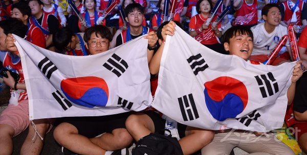 18일 서울 강남구 삼성동 영동대로에 위치한 현대자동차 팬파크에서 2018 러시아월드컵 조별예선 F조 대한민국과 스웨덴의 경기를 앞두고 거리응원이 펼쳐졌다. 축구팬들이 스크린을 보며 열정적인 응원을 펼치고 있다.