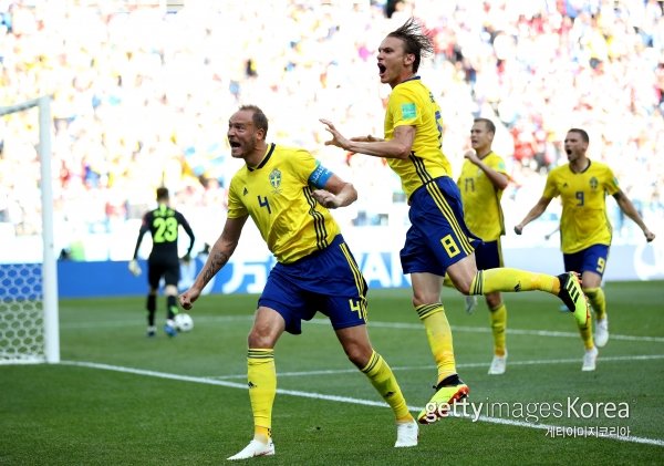 한국을 꺾고 60년 만에 월드컵 첫 경기 승리를 만들어 낸 스웨덴 주장 안드레아스 그랑크비스트가 승리에 감격했다.
