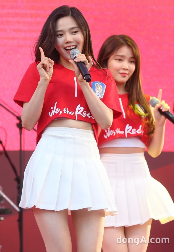 그룹 오마이걸의 효정이 2018 러시아 월드컵 F조 조별리그 1차전 대한민국VS 스웨덴 전이 열린 18일 오후 서울 종로구 세종로 광화문광장 거리응원에서 무대를 펼치고 있다.
