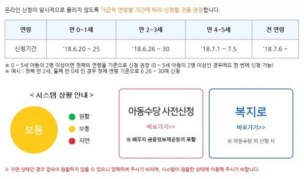 아동수당 사전신청·접수가 \'복지로\' 사이트에서 시작된다.