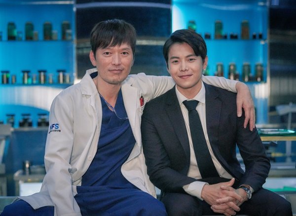 사진에는 시청자들의 뜨거운 관심에 웃음꽃이 핀 정재영-박은석, 두 사람이 현장에 함께 있는 모습을 볼 수 있어 눈길을 사로 잡는다. 두 사람은 다정한 포즈를 취하며 남다른 케미를 자랑하는 등 에너지 넘치는 촬영 현장을 예상케해 드라마에 대한 기대를 한껏 끌어올린다.
