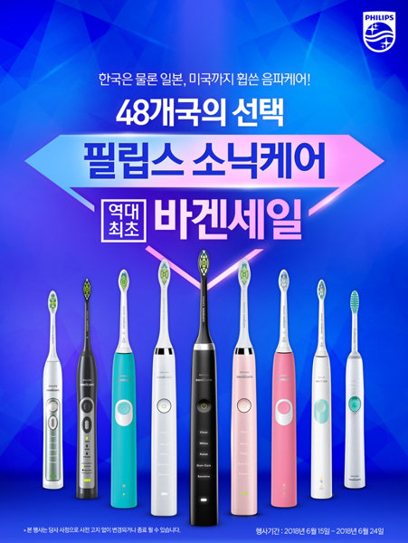 필립스코리아 소닉케어는 24일까지 온라인쇼핑몰 옥션에서 단독 프로모션으로 최대 55% 할인 판매를 실시한다. 음파칫솔 ‘다이아몬드클린’은 45% 할인된 16만9000원에, 최신제품인 ‘프로텍티브클린1.0’은 7만9000원에 구매할 수 있다. 가족 패키지상품으로 핸들이 두 개 제공되는 ‘플렉스케어 플러스’와 ‘이지클린’은 각각 55%, 48%가 할인된 11만5000원과 6만5900원이다.