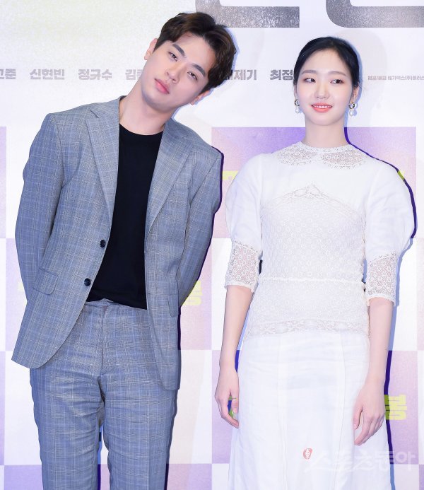 배우 박정민과 김고은(오른쪽)이 20일 서울 강남구 삼성동 메가박스 코엑스에서 열린 영화 ‘변산’ 언론시사회 및 기자간담회에서 포즈를 취하고 있다.