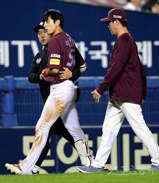 이정후는 19일 잠실 두산전 7회초 무사 만루에서 3타점 적시타를 때린 뒤 3루에 슬라이딩을 하다 왼쪽 겨드랑이가 땅에 충돌했다. 곧장 큰 고통을 호소했고 정밀검진 결과, 전하방 관절아순 부분 파열 진단을 받았다. 근육이 부분 파열된 큰 부상으로 약 2주간 안정기를 보내야 하고, 타격 기술 훈련까지는 5주간 치료가 필요하다.
