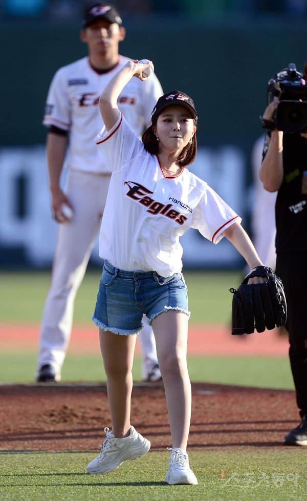 20일 청주야구장에서 ‘2018 신한은행 MY CAR KBO리그’ LG트윈스와 한화이글스 경기가 열렸다. 경기 전 아나운서 이향이 시구를 하고 있다.