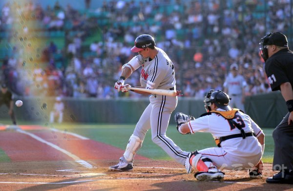 20일 청주야구장에서 ‘2018 신한은행 MY CAR KBO리그’ LG트윈스와 한화이글스 경기가 열렸다. 1회초 2사 LG 박용택이 중전 안타를 치고 있다.