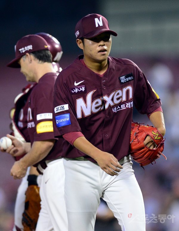 20일 잠실야구장에서 ‘2018 신한은행 마이카 KBO리그’ 두산 베어스와 넥센 히어로즈의 경기가 열렸다. 4회말 무사 1, 2루에서 넥센 선발 김정인이 교체되고 있다.