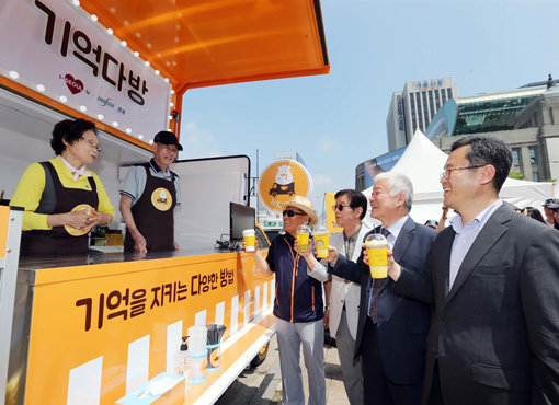 기억다방은 경도인지장애 또는 경증치매 진단을 받은 어르신이 바리스타로 참여하는 이동식 카페다.