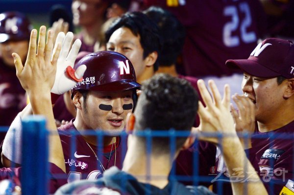 20일 잠실야구장에서 ‘2018 신한은행 마이카 KBO리그’ 두산 베어스와 넥센 히어로즈의 경기가 열렸다. 7회초 2사 1루에서 넥센 박병호가 두산 이영하를 상대로 중월 투런 홈런을 쏘아 올린 뒤 동료들의 환영을 받고 있다.