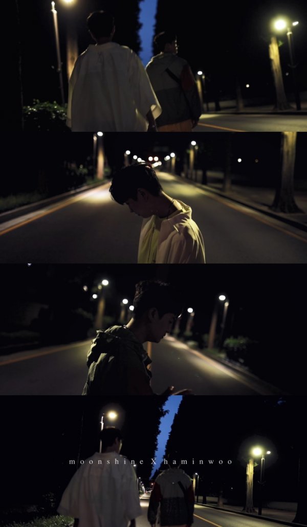 영상은 어두운 밤거리를 걷고 있는 문샤인과 하민우의 뒷모습으로 시작된다. 두 사람은 어딘가를 향해 계속 걸어가고 있으며, 신비로우면서도 긴장감 있는 BGM이 자못 미스터리 한 분위기를 자아내며 보는 이들을 단숨에 영상 속으로 몰입시켰다.