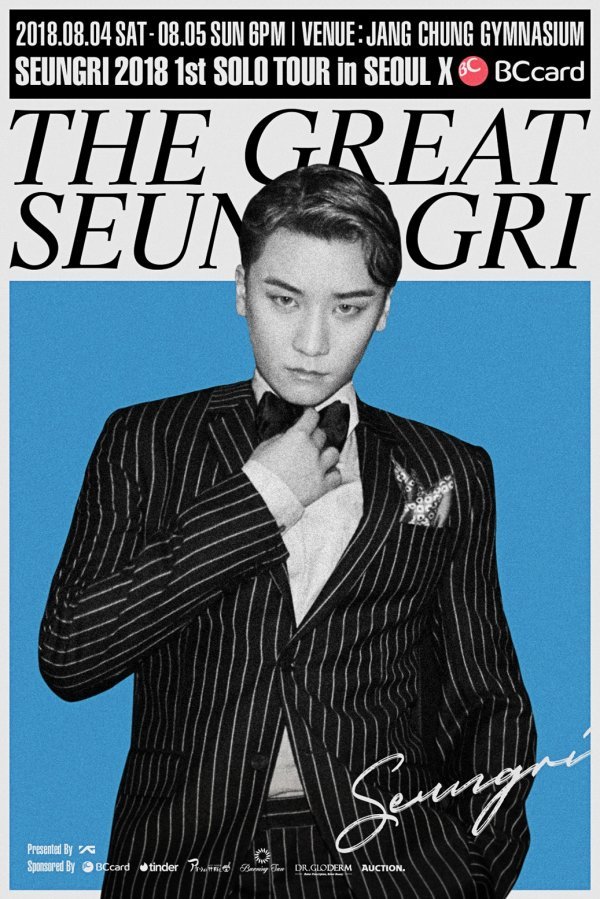 승리는 8월 4일~5일 오후 6시 서울 장충체육관에서 첫 단독 콘서트 \'SEUNGRI 2018 1st SOLO TOUR [THE GREAT SEUNGRI] in SEOUL x BC CARD\'를 열고 팬들과 즐거운 만남을 가진다.