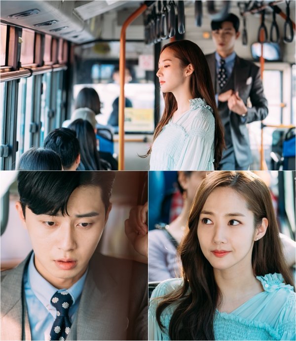 tvN 수목드라마 ‘김비서가 왜 그럴까’ 박서준-박민영이 버스 안에서 숨막히는 밀당을 펼친다.