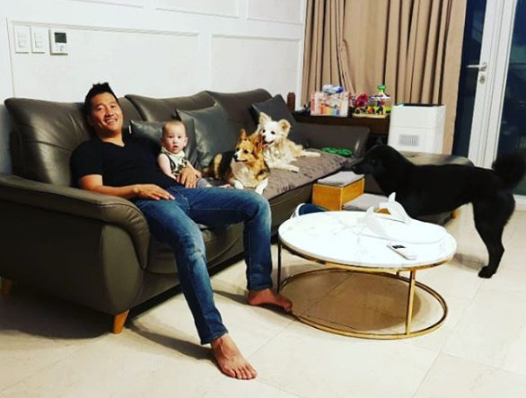 공개한 사진에는 아들을 품에 안고 환하게 미소지은 강형욱의 모습이 담겨 있다. 소파에 앉은 강형욱의 옆에는 그를 바라보는 반려견 세 마리의 모습도 확인할 수 있다.