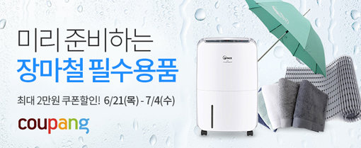 쿠팡은 본격적인 장마 시즌을 앞두고 ‘장마철 필수용품 모음전’을 7월14일까지 진행한다. 장마철 외출 필수품 우산부터 집안 습도 조절을 위한 제습기까지 250여 개 상품을 한 곳에 모아 판매한다.