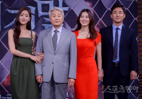 배우 오승아와 서인석, 이일화, 전노민(왼쪽부터)이 21일 서울 마포구 상암동 MBC에서 진행된 MBC 새 일일드라마 ‘비밀과 거짓말’ 제작발표회에서 포즈를 취하고 있다.