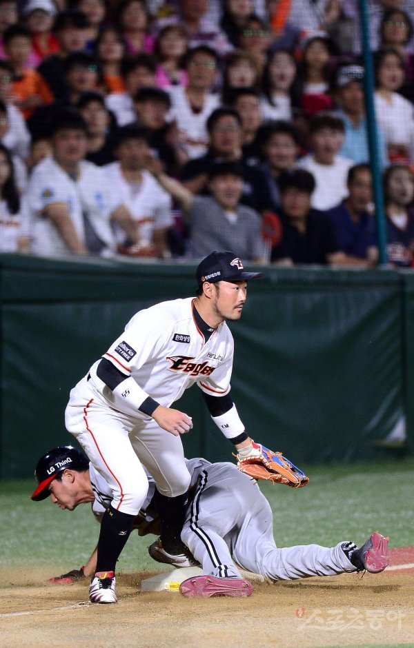 21일 청주야구장에서 ‘2018 신한은행 MY CAR KBO리그’ LG트윈스와 한화이글스 경기가 열렸다. 6회초 1사 1,2루 상황에서 2루주자 LG 김용의가 3루 도루에 성공하고 있다.