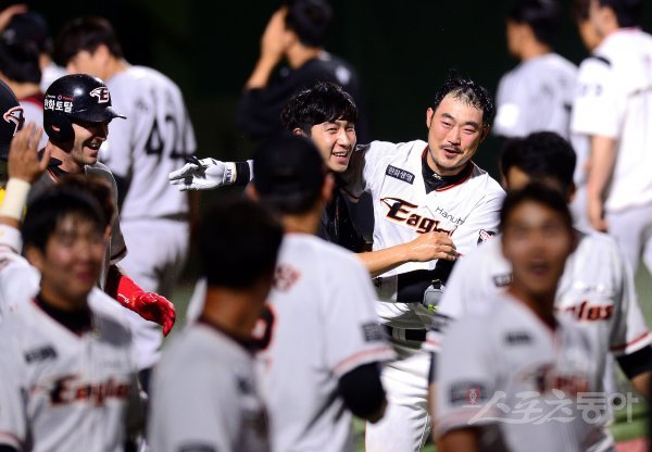 21일 청주야구장에서 ‘2018 신한은행 MY CAR KBO리그’ LG트윈스와 한화이글스 경기가 열렸다. 9회말 2사 2,3루 한화 송광민이 끝내기 홈런을 날린 후 환호하고 있다.