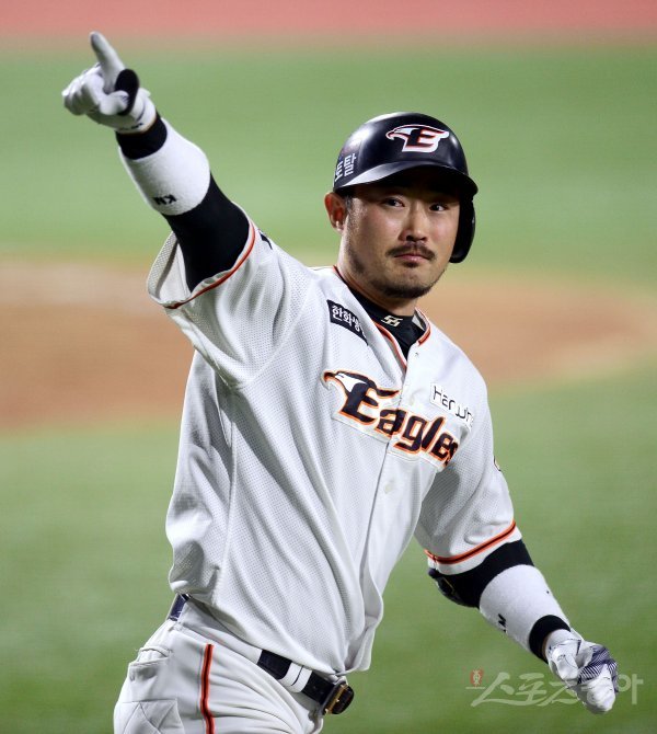 21일 청주야구장에서 ‘2018 신한은행 MY CAR KBO리그’ LG트윈스와 한화이글스 경기가 열렸다. 9회말 2사 2,3루 한화 송광민이 끝내기 홈런을 날린 후 환호하고 있다.