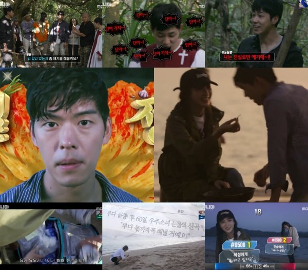 그런 가운데 이상한 소리와 함께 이들 앞에 갑자기 택배 상자 2개가 나타났다. 각종 밑반찬과 밀가루가 담기 게임 박스가 워프 된 것. 멤버들은 모두 한데 모여 음식을 발견하고 기쁨의 소리를 질렀고, 박스에 들어 있던 김을 나눠 먹으며 생존에 대한 희망을 끌어올렸다.