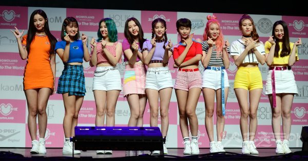 걸그룹 모모랜드가 26일 서울 용산 블루스퀘어에서 4집 미니앨범 ‘Fun to The World’ 쇼케이스에 참석해 카메라를 향해 포즈를 취하고 있다.