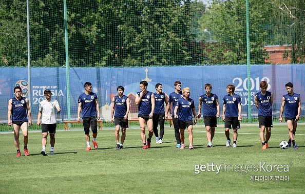 일본 베이스캠프인 러시아 카잔에서 훈련중인 일본 축구대표팀의 모습. 사진=게티이미지코리아