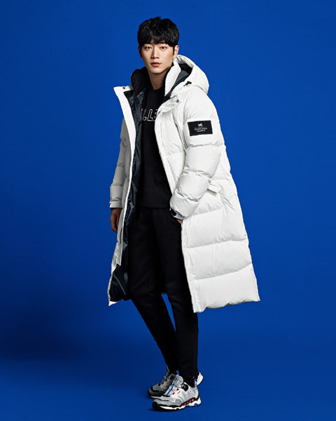‘한여름의 덕다운 파카’. 올겨울에도 벤치파카가 인기몰이를 할 것으로 예상되는 가운데 지난해 벤치파카로 재미를 본 아웃도어·스포츠 브랜드들이 앞 다퉈 벤치파카 선판매 경쟁을 벌이고 있다. 사진은 밀레의 ‘베릴 벤치파카’를 입은 전속모델 서강준. 사진제공|밀레