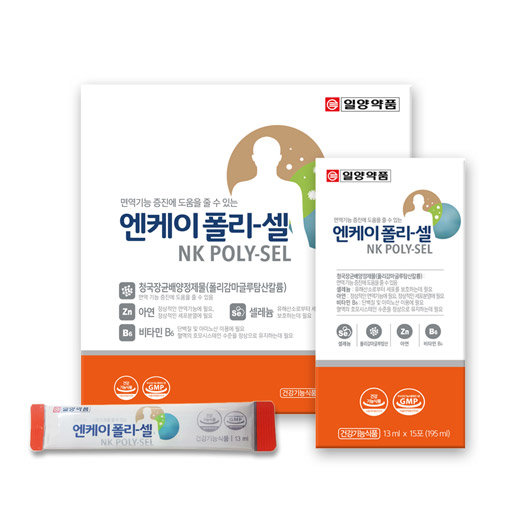 일양약품 ‘엔케이 폴리셀’은 면역기능 증진에 도움을 주는 ‘폴리감마글루탐산’을 주원료로, 항산화력으로 활성산소를 제거하는 셀레늄, 정상적인 면역기능과 세포분열에 필요한 아연, 단백질 및 아미노산 이용에 필요한 비타민 B6 등을 함유하고 있다. 겔 타입 파우치 형태로 포장돼 하루에 한 포씩 간편하게 섭취하면 된다.